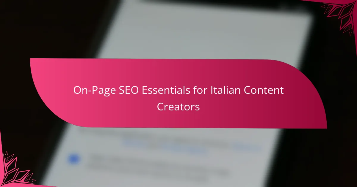 For Italian content creators, mastering on-page SEO is crucial to enhance visibility and engagement. By focusing on keyword relevance, content quality, and technical performance, creators can significantly improve their search engine rankings. Key elements such as title tags, meta descriptions, and mobile optimization play a vital role in ensuring that content reaches its intended audience effectively.